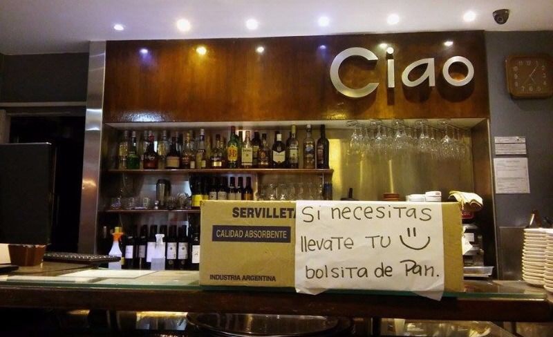 Días atrás, Patricia, una empleada del restaurante Ciao, ubicado en avenida Colón 2173 (entre Buenos Aires y Entre Ríos), se le ocurrió que el pan que sobraba en el comercio y que ya no se ponía en la mesa de los clientes sí podía servirle a otras personas. Entonces lo embolsó, buscó una caja de cartón y lo puso en una mesita, en la puerta del local, con un cartelito que invita: “Si necesitás, llevate tu bolsita de pan”.