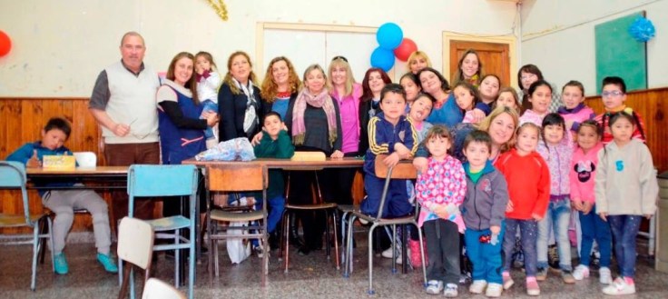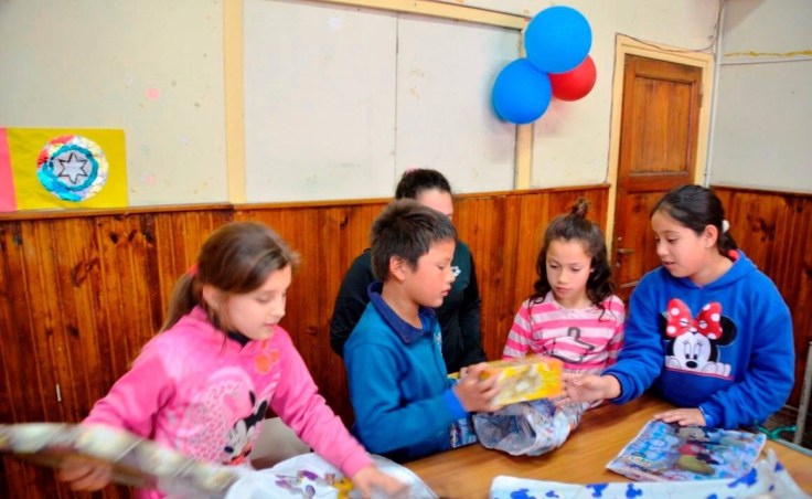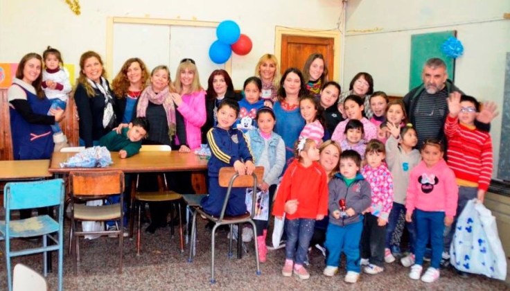 Integrantes de la Comisión de Acción Social, entregando los Regalitos a los ahijados de nuestra Insitucion, el Jardín Maternal «El Grillito» en alusión al festejo del Día del Niño.