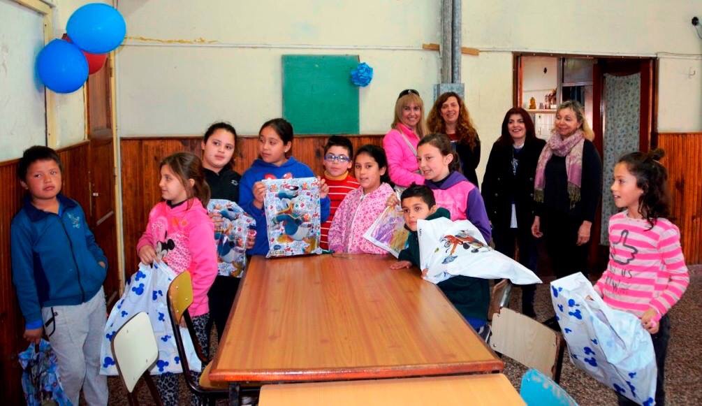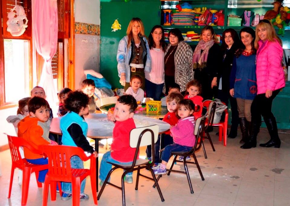 Integrantes de la Comisión de Acción Social, entregando los Regalitos a los ahijados de nuestra Insitucion, el Jardín Maternal «El Grillito» en alusión al festejo del Día del Niño.