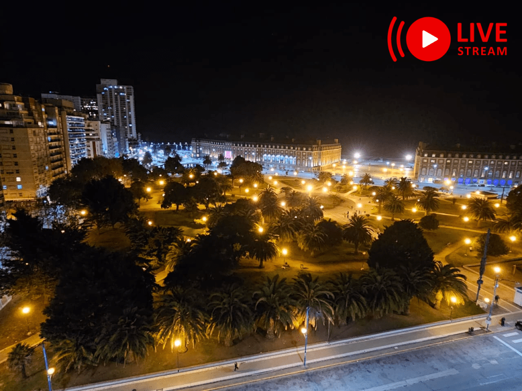 Vista nocturna de la cámara ubicada frente a la tradicional Plaza Colon de Mar del Plata