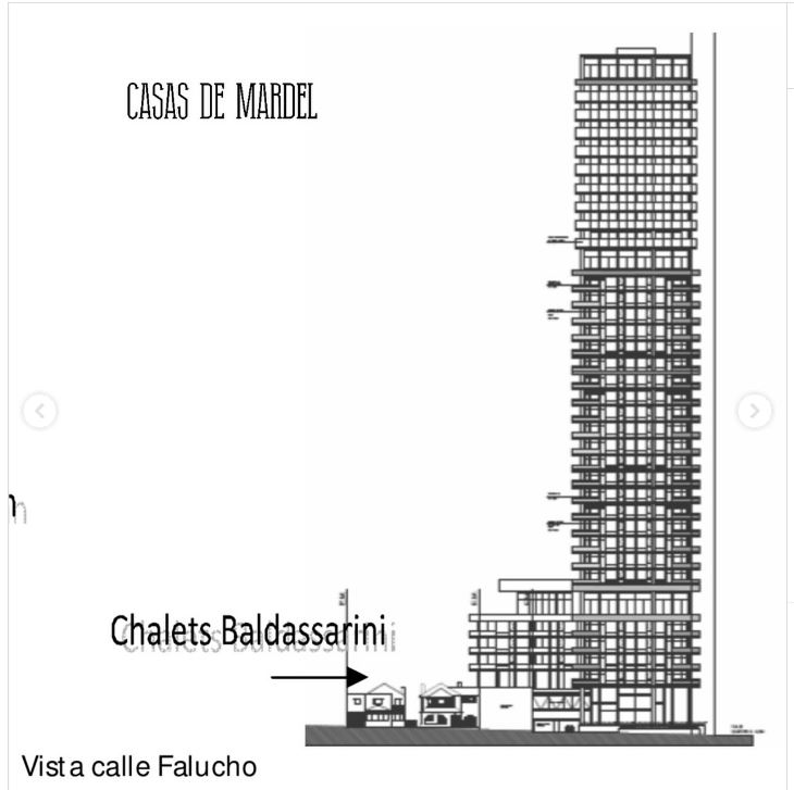 En particular este proyecto autoriza a la empresaria Florencia Miconi, como presidenta de Fiduciaria Paisajes Urbanos MDP SA, a la construcción de un edificio en torno a un inmueble declarado de interés patrimonial como lo es el “Chalet de María Frers de Mahn” y de otros dos aún sin declarar pero que forman parte de un conjunto del ingeniero Alula Baldassarini.